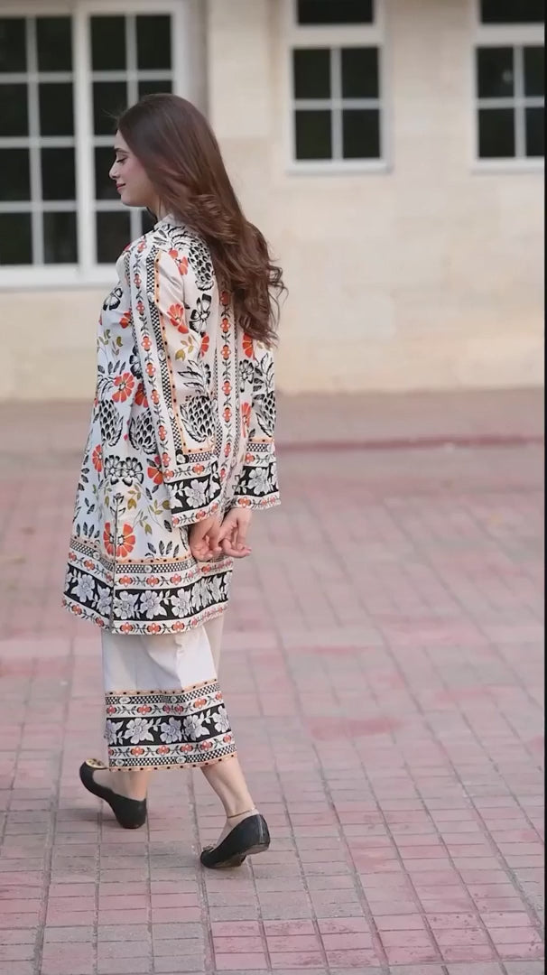 Luxury Floral Printed Pakistani Lawn Suit for Women – 2 Piece Designer Set | Muslin Fabric