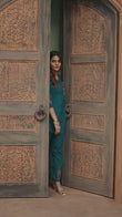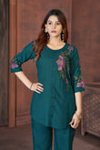 Teal Green Embroidered Cotton Co-Ord Set for Women | Kurta with Pants