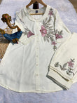Elevate your ethnic wardrobe with this stylish embroidered kurta set for women. Crafted from premium quality cotton fabric, this straight kurta with matching pants offers all-day comfort and a graceful look. The floral embroidery on sleeves and hemline adds a touch of elegance, making it perfect for casual wear, festive occasions, office wear, and small gatherings. The button-down kurta design paired with comfortable straight pants ensures a chic and modern style. Pair it with traditional earrings and flats for a complete look.
